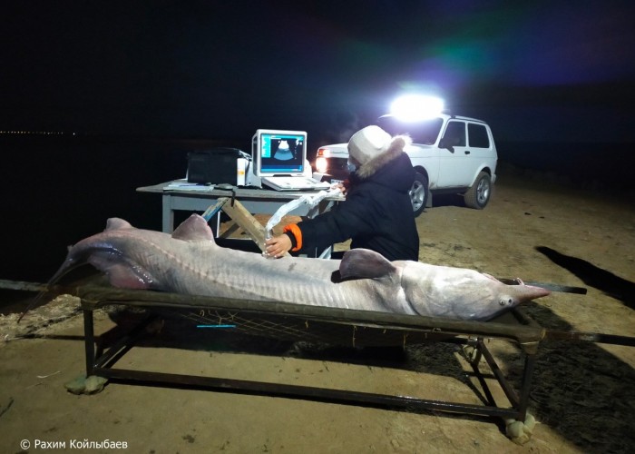 Вчера ночью, 29 марта, в Казахстане рыбаками ТОО «Амангелды» в нижней части реки Жайык (Урал) была выловлена белуга. Вылов проводился в целях выполнения государственного заказа по выпуску молоди осетровых видов рыб. knews.kg »