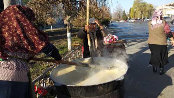 Жительнице Узгена Жаннатхон Каримовой - 75 лет. У нее 10 детей, 40 внуков и 11 правнуков. Вот уже почти 50 лет она каждый год накануне Нооруза готовит главное угощение праздника - сумолек. 24.kg »