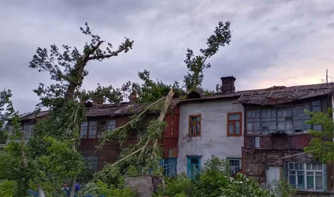 Обрушения фасадов и сорванные крыши: сильный ветер обрушился на Атырау